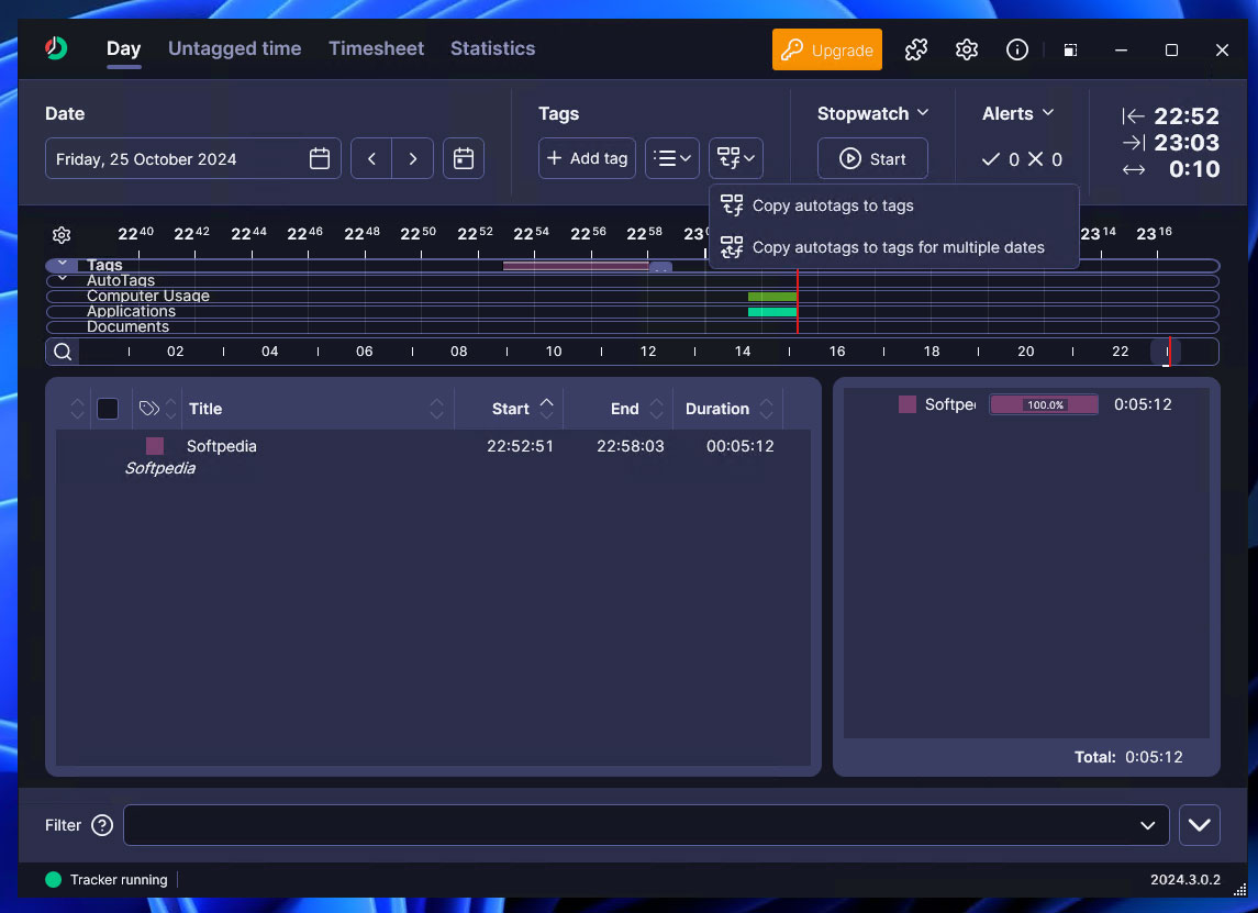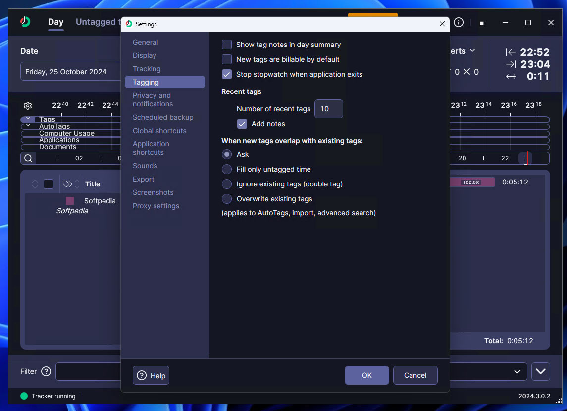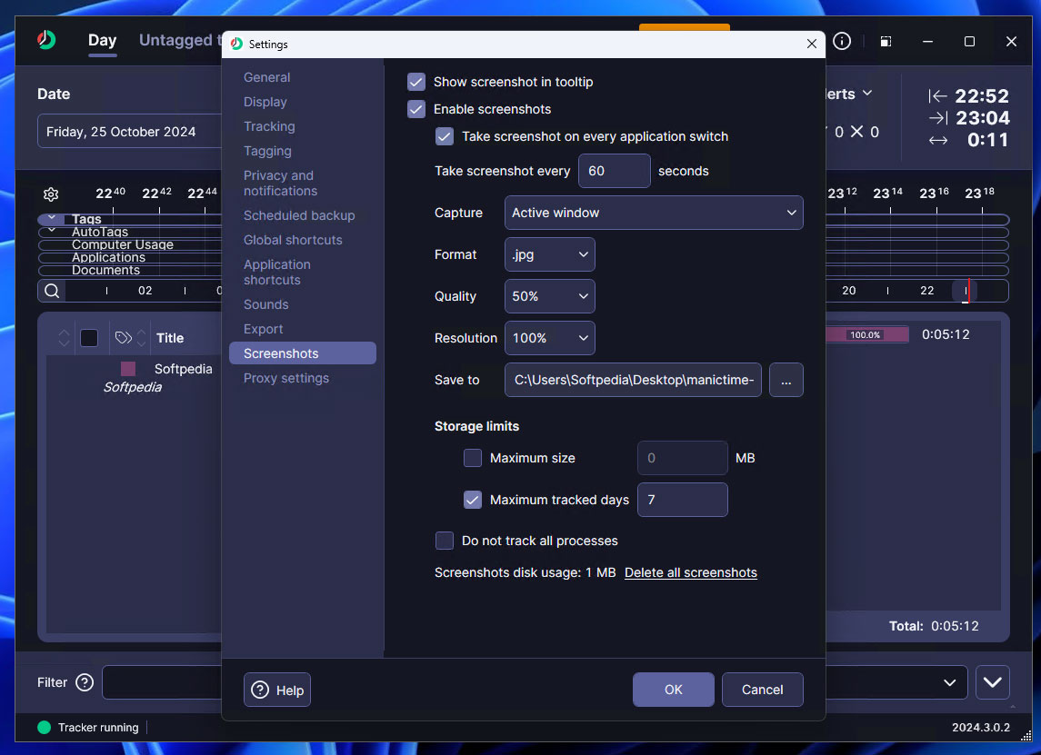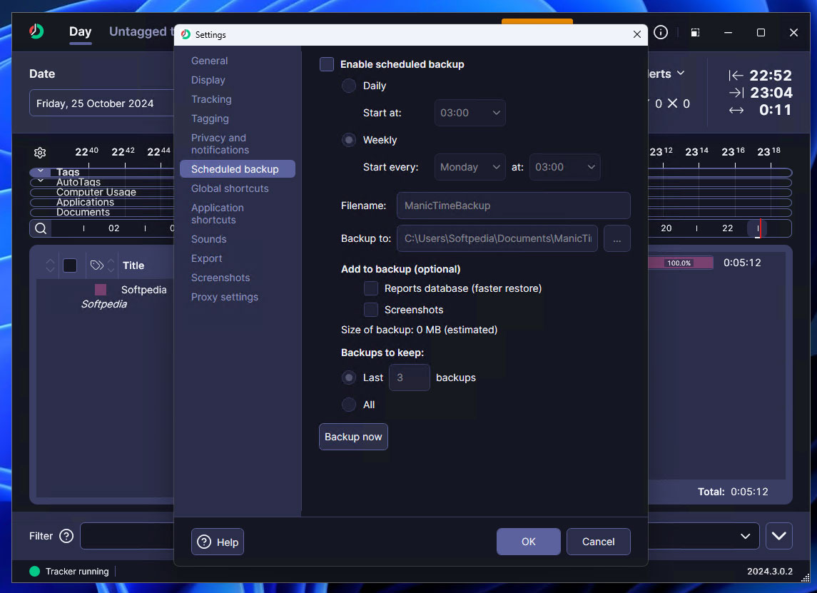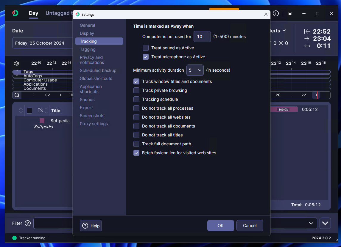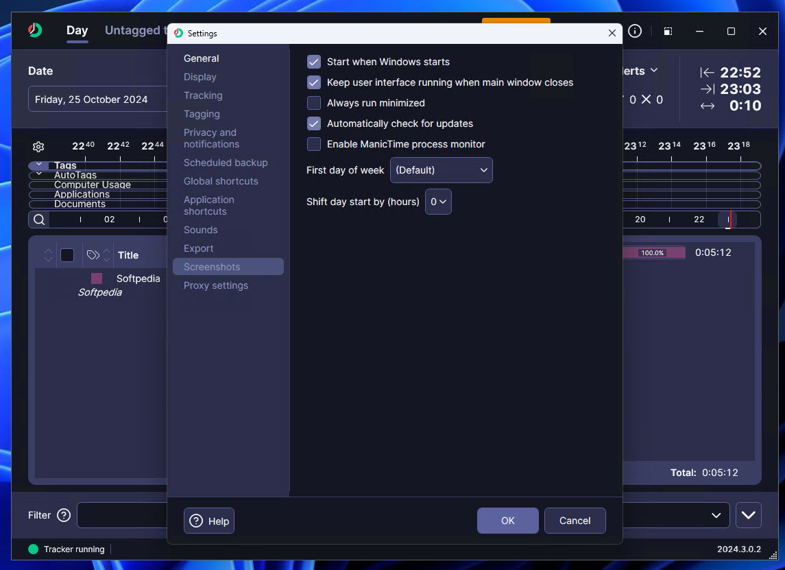ManicTime يبدأ العمل في الخلفية تلقائيًا، مع تسجيل جميع النشاطات على التطبيقات، المستندات، والمواقع.