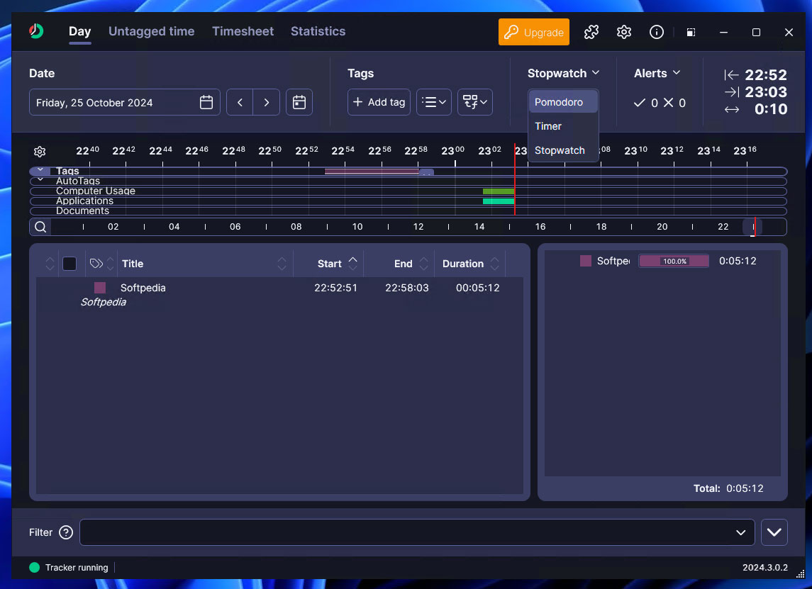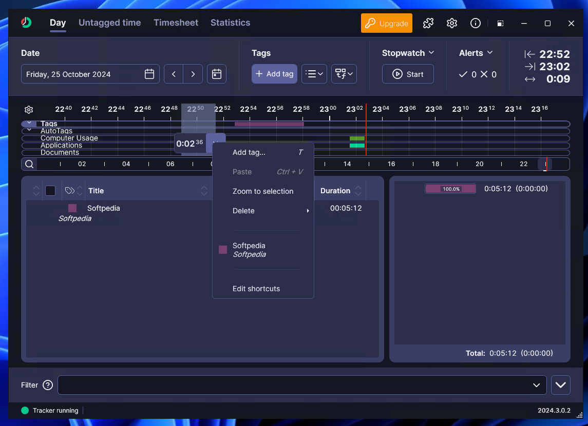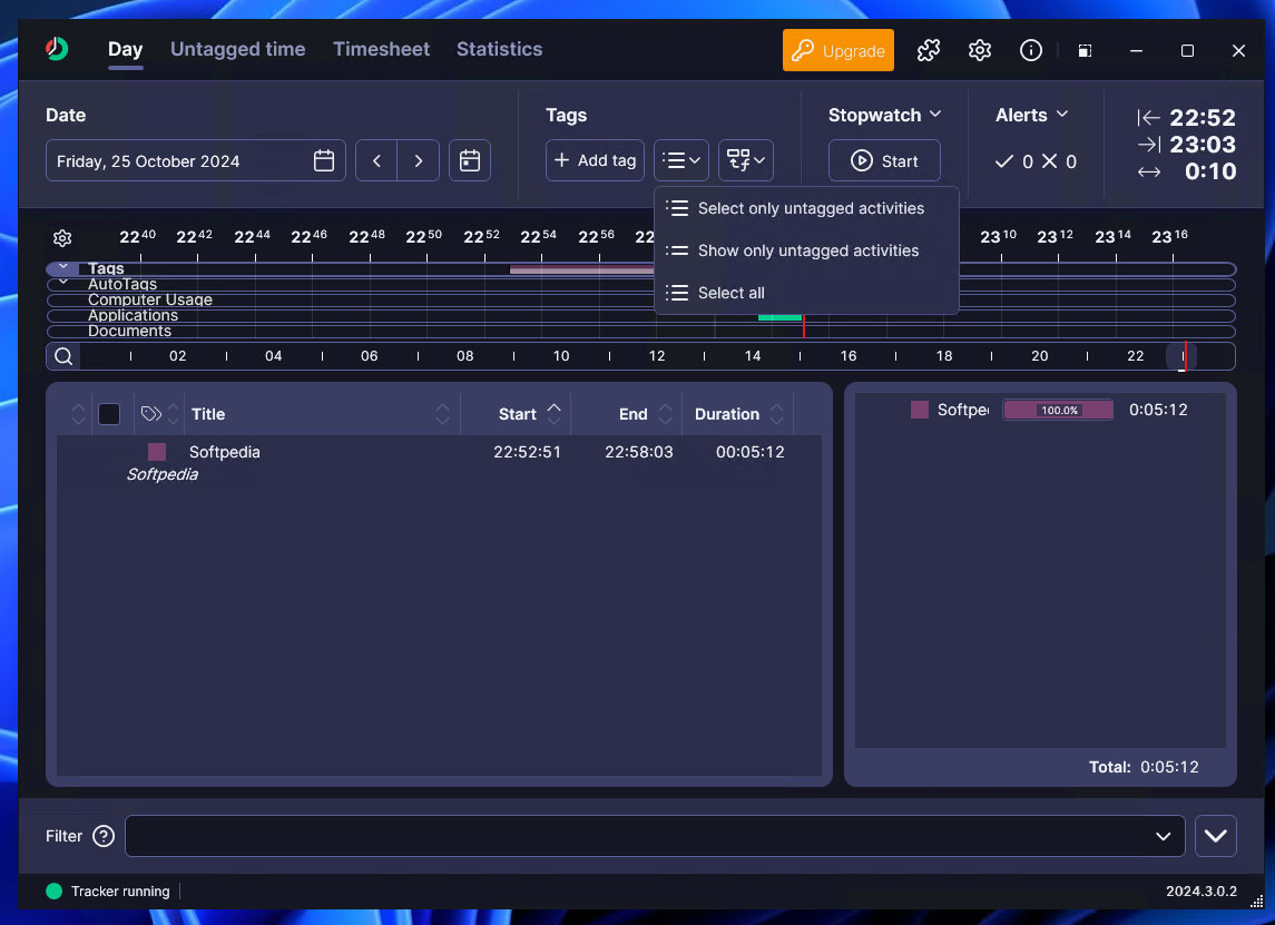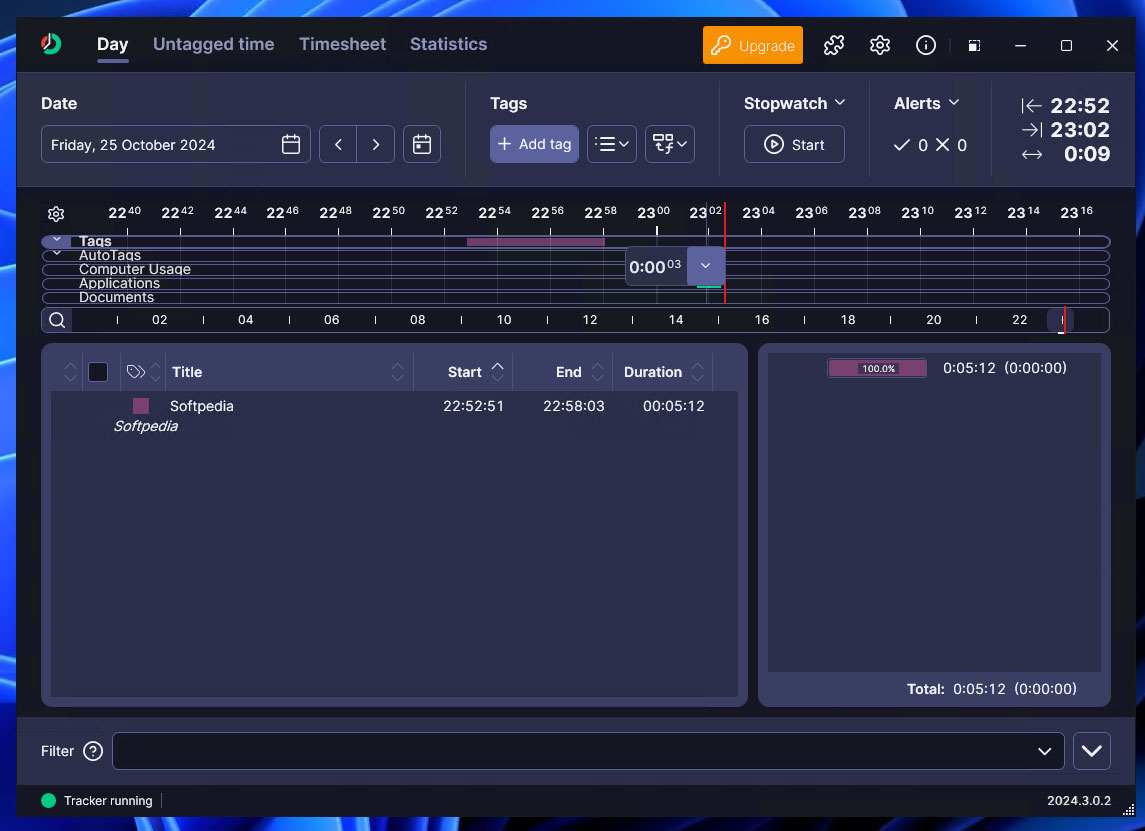 يتيح البرنامج معرفة دقيقة لكيفية قضاء الوقت على الكمبيوتر أو الجهاز المحمول، مع الحفاظ على خصوصية البيانات لأنها مخزنة محليًا على الجهاز، ولا يتم إرسالها لأي جهة خارجية. يدعم البرنامج العمل دون الحاجة لاتصال بالإنترنت ويعتمد على قاعدة بيانات محلية لضمان الاستمرارية والأمان.