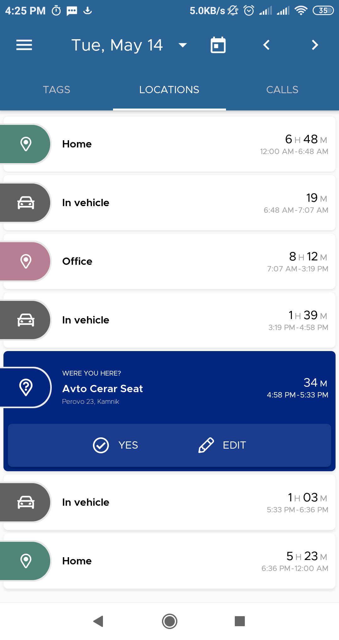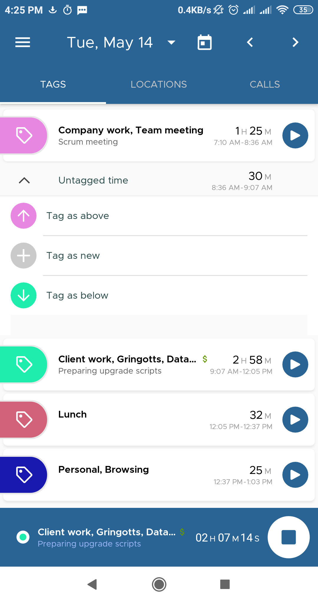 واجهة تطبيق ManicTime للاندرويد